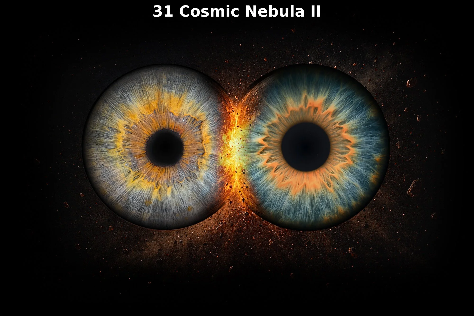 Cosmic Nebula II features two irises meeting in a burst of colour and light. This striking artwork captures intensity, balance, and universal energy within a cosmic theme. View fullsize
